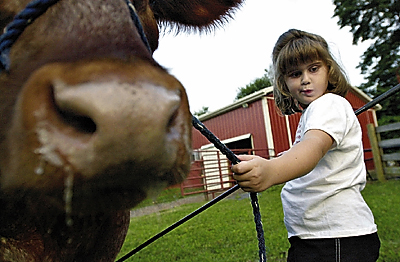 4-H Clover Carla Stubbs works with a steer while getting ready for the Montgomery County Agricultural Fair.